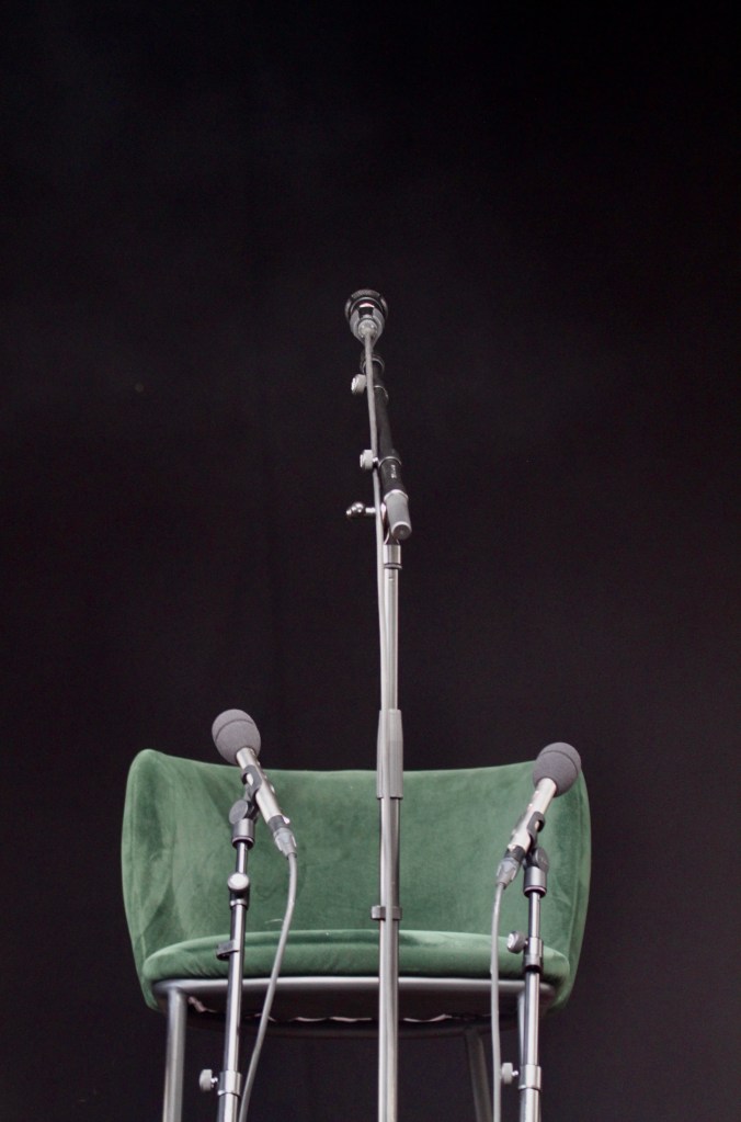 När jag kom till Bjerreds station den eftermiddagen möttes jag av en nästan helt tom scen. Sånär på som på en grön stol och en mikrofon…