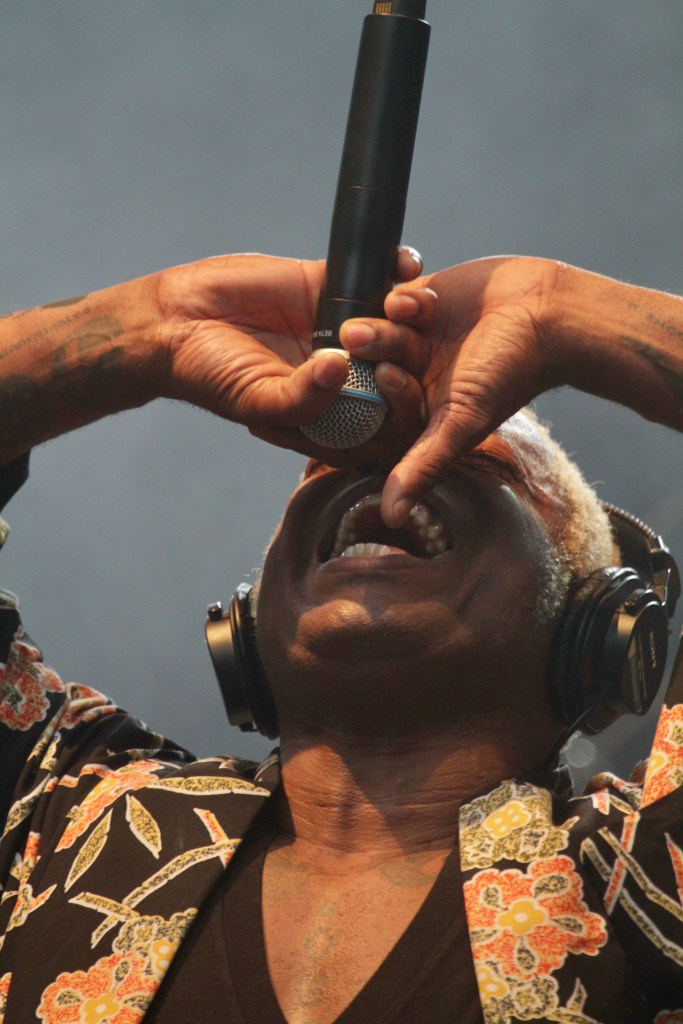 …att bandets sångare klättrade, sprang, pratade, skrattade. Det regnade ändå kallt in. Till och med i tältet där all ljudutrustning och kontroller fanns. Spelningen försenades men till slut skulle Vintage Trouble få visa varför de anses som ett av de bästa live-banden att se och höra.